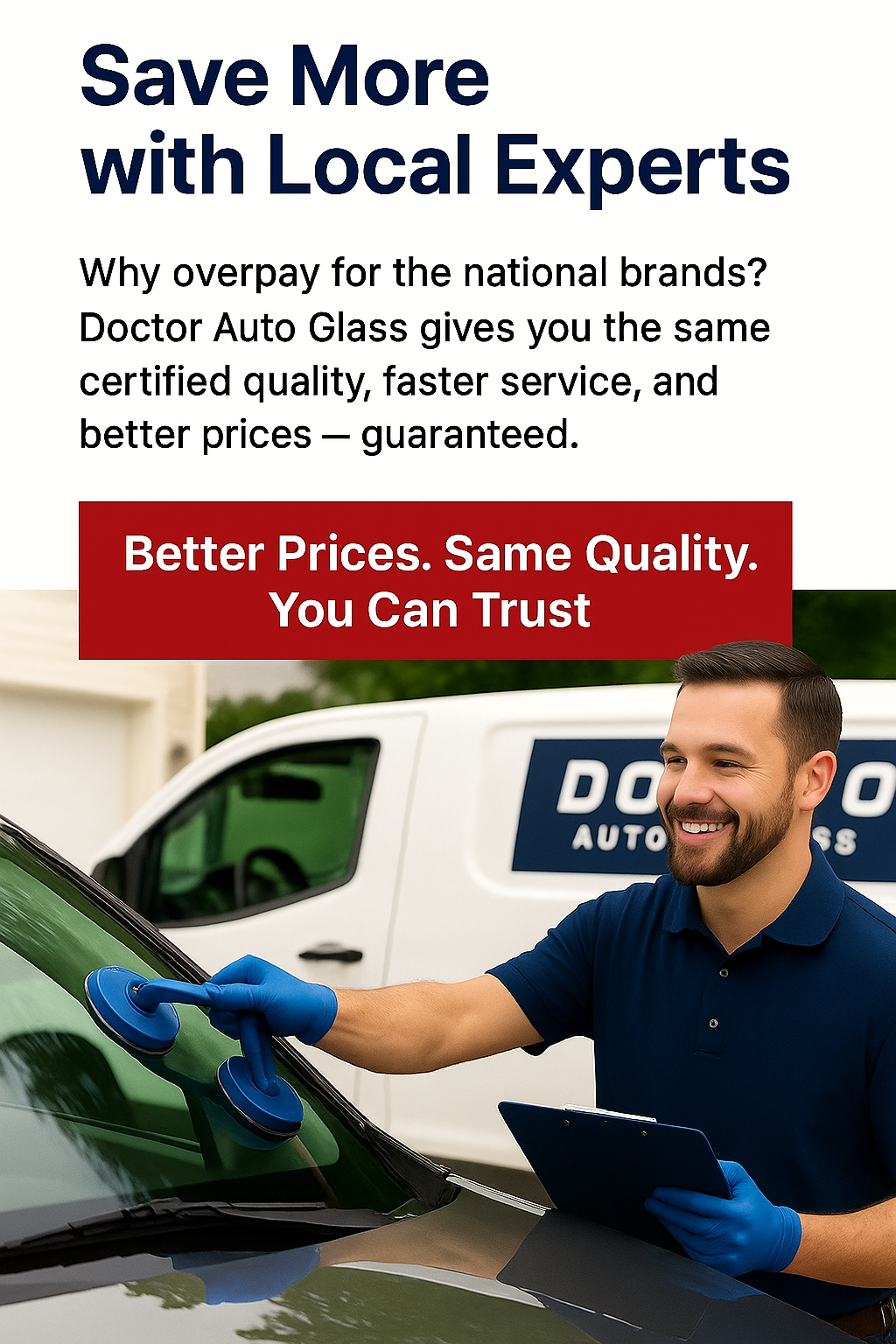 Doctor Auto Glass gives you the same certified quality, faster service, and better prices - guaranteed.